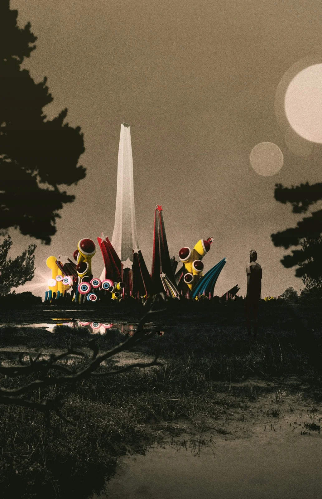 Down, then down a bit more, scraping the caps of my new shoes against a soft earth until i could feel a solid lump under the ball of my right foot. I brought my heel to rest on it, letting go of my hand grips on the embankment and trusting that my left foot would come to rest too, but the gods had other intentions for me right then and it seemed as though i had only found a tiny outcrop of rock along the dark ledge on which my right foot now rested precociously, if not indefinitely as i was slowly sinking as the outcrop started crumbling under my shoe. Seconds later i woke up in complete darkness with the vague impression of having been asleep for days, weeks perhaps. My head felt heavy, i got up and trying to focus my eyes in the dark I once again saw the Starr City a bit less bright through a light mist settling in the air - looking like a fireworks display. Between us lay what seemed like a field of shrubs and long grass and I could faintly distinguish single elements that looked astonishingly like periscopes growing out from the ground surveying their surroundings. What were they witness to?